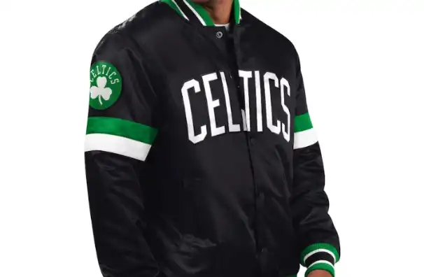 Men's Starter Black Boston Celtics Home Game Satin Full-Snap Varsity Jacket