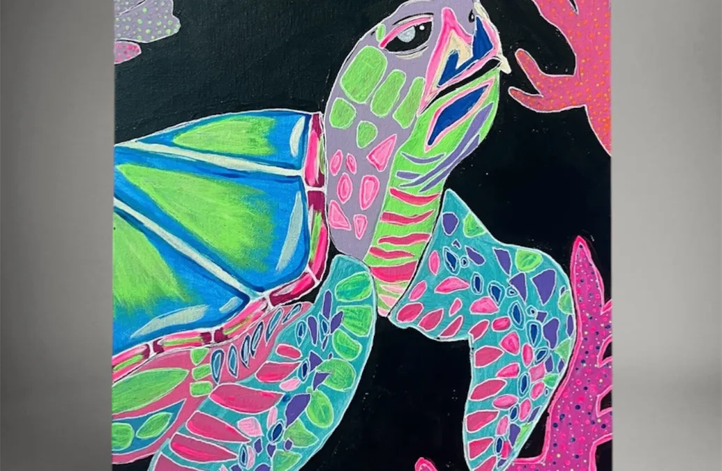 Neon Sea Turtle Art