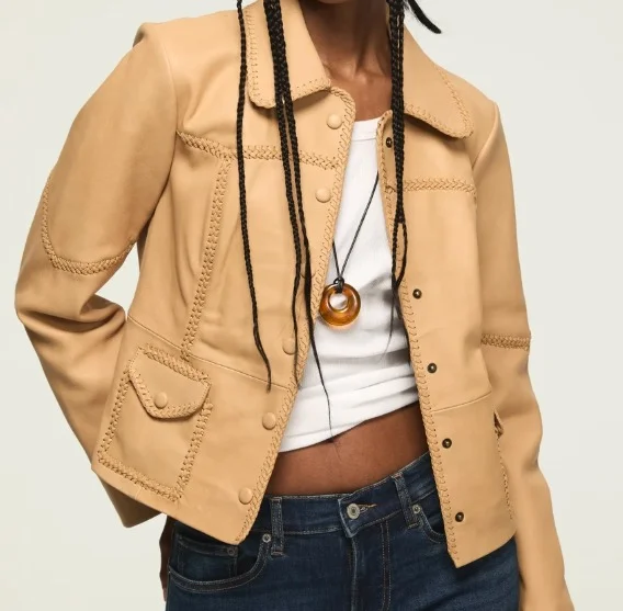 Braided Seamed Leather Jacket