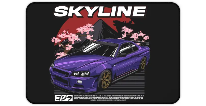 R34 GTR Desk Mat - Power & Cherry Blossoms