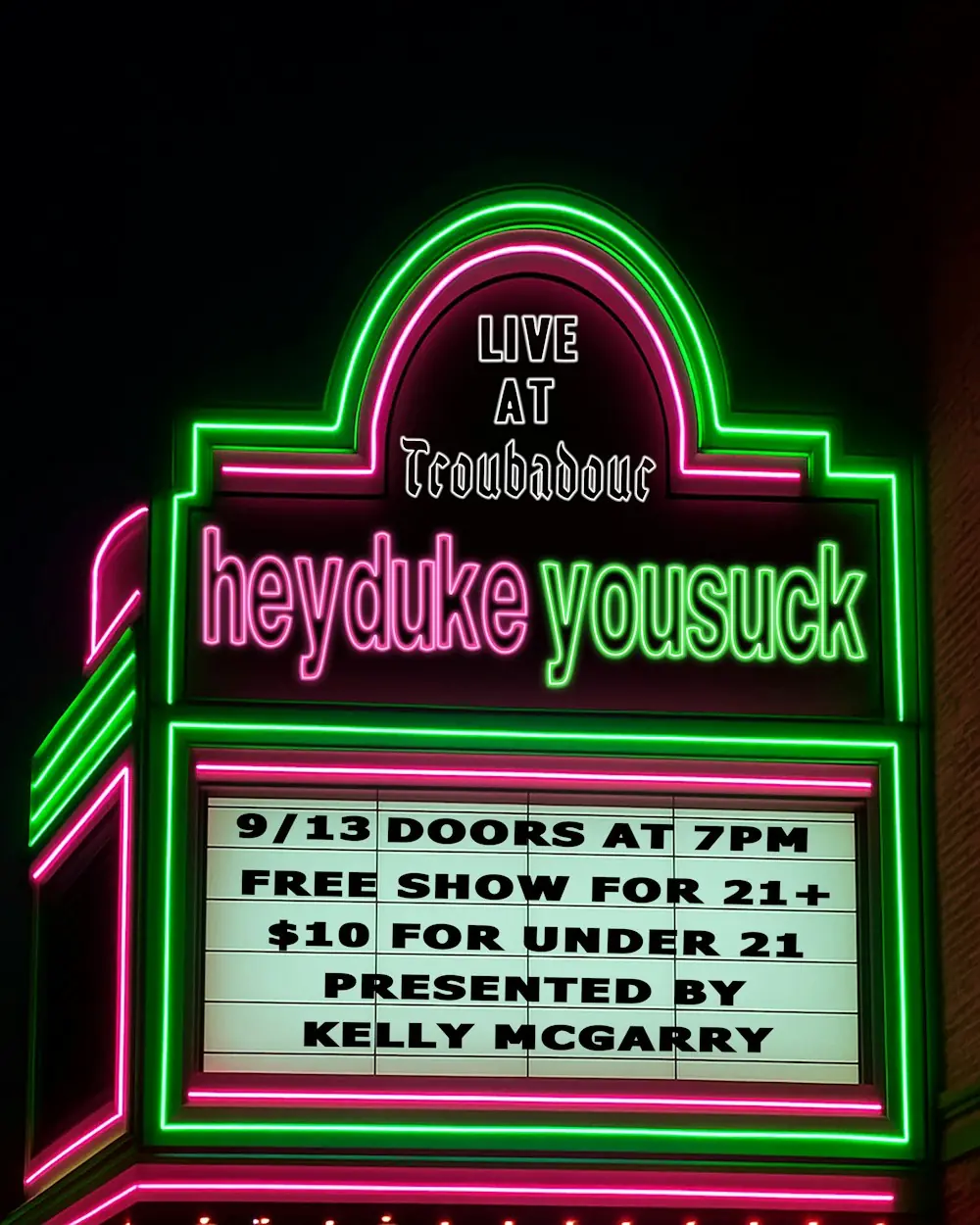 RSVP to heydukeyousuck live at the Troubadour | Partiful
