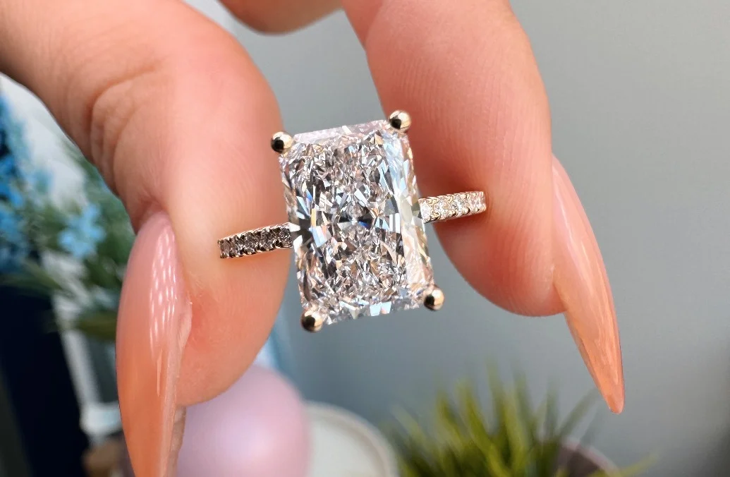 Radiant cut engagement rings