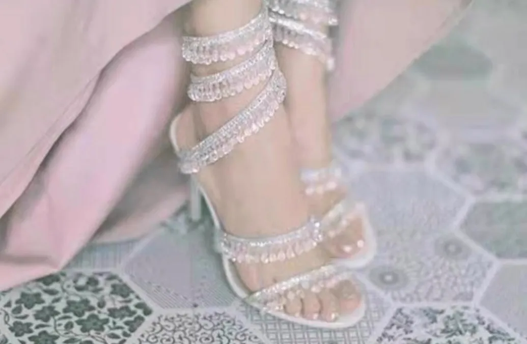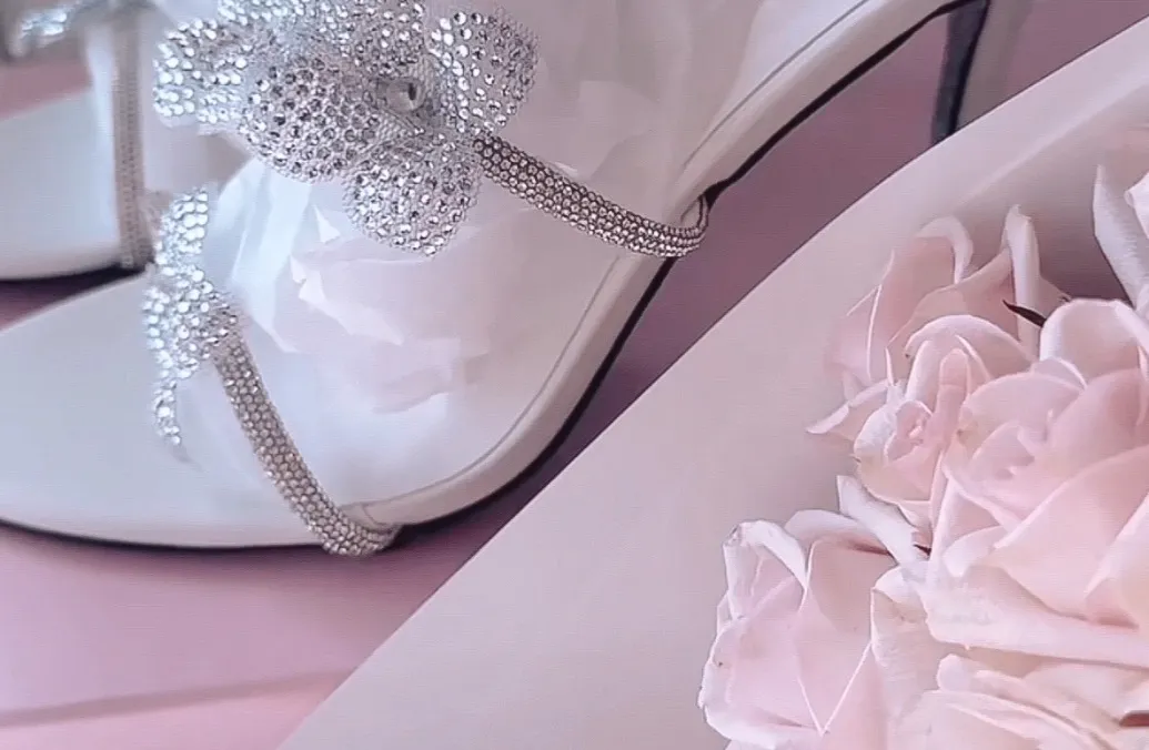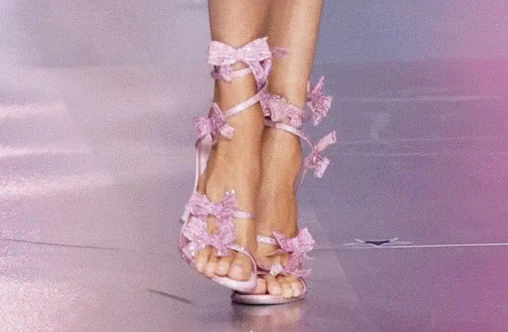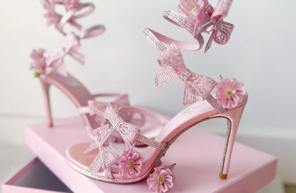 Celestial Pink Glitter Blossom Bows wrapped around your ankles like climbing roses 🥀