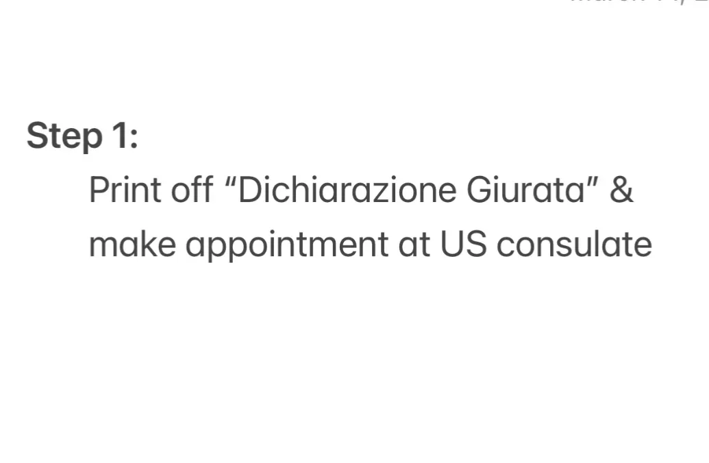 Step 1: Print off “Dichiarazione Giurata” & make appointment at US consulate