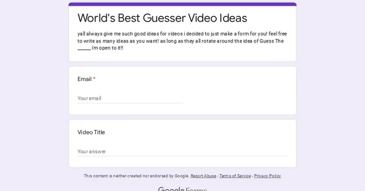 Wanna be a in video? Fill this out!