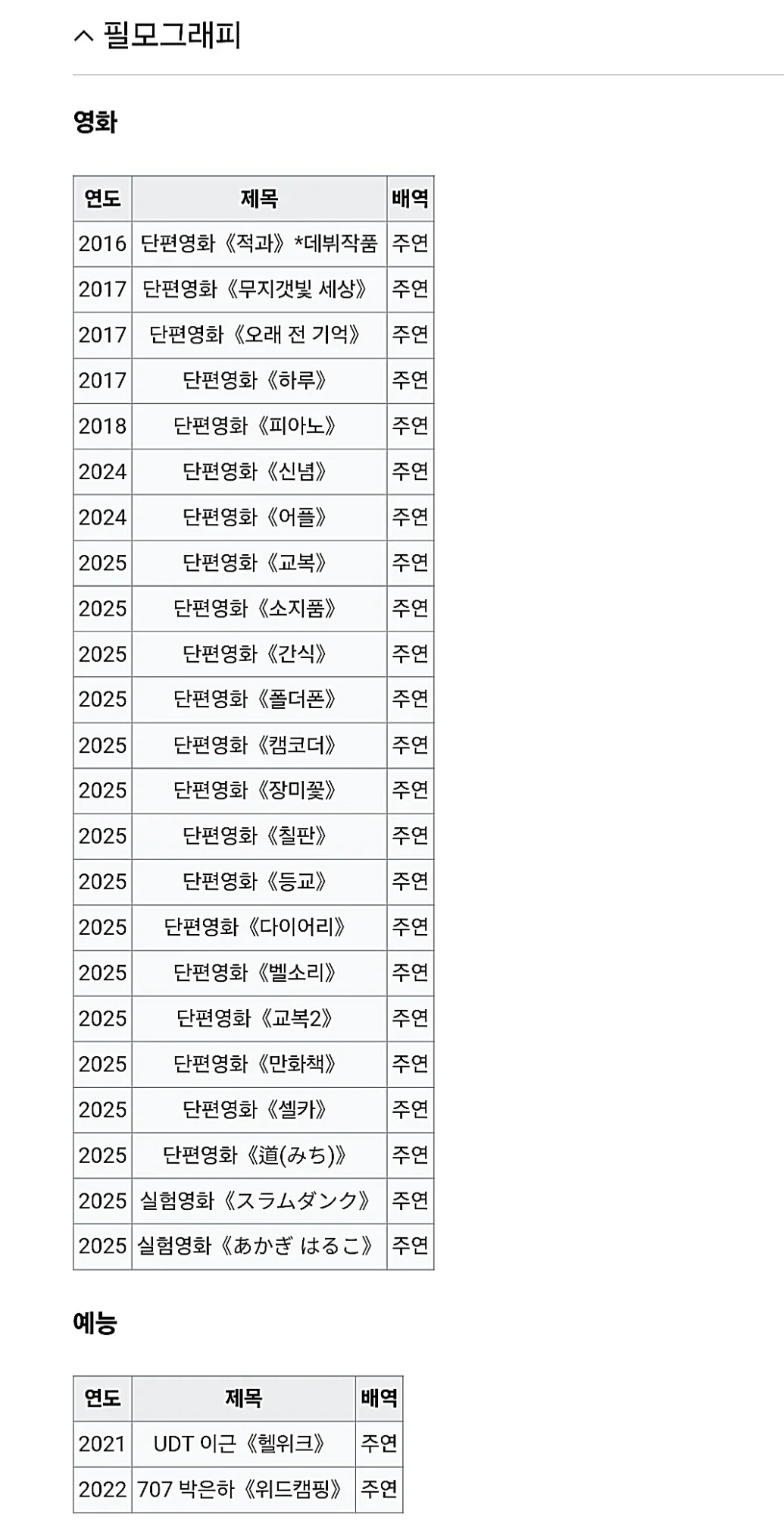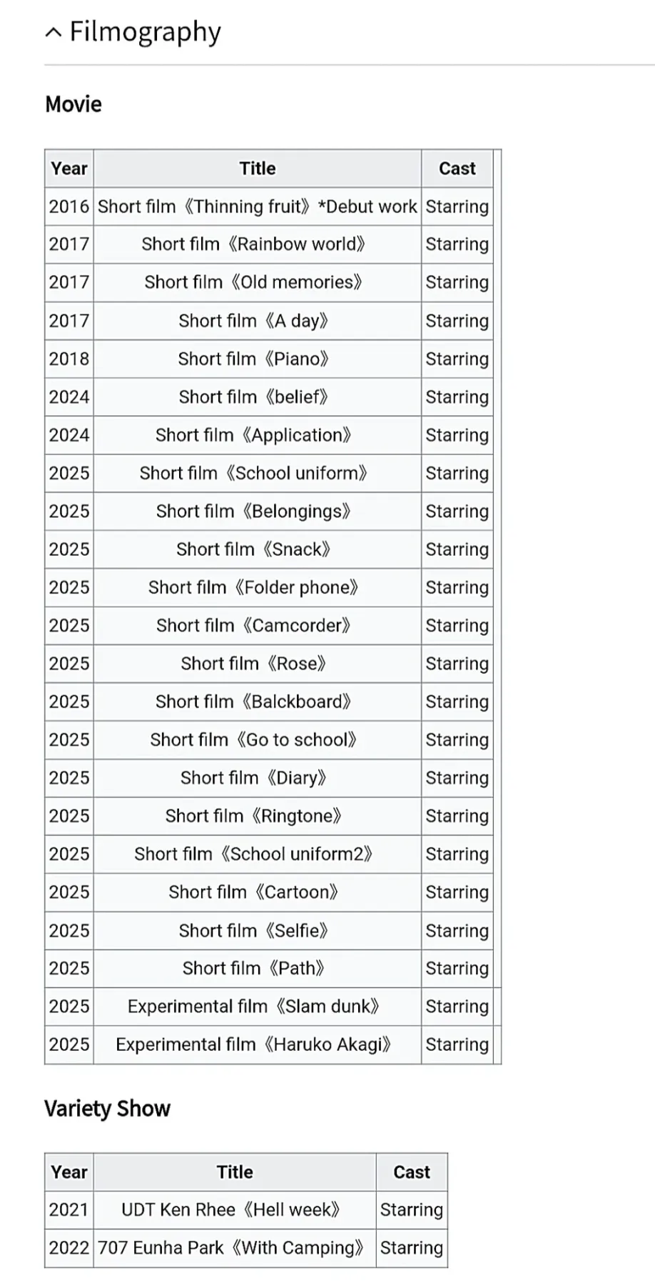 Filmography (Korean) 출연작