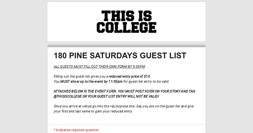 180 PINE SATURDAYS GUEST LIST
